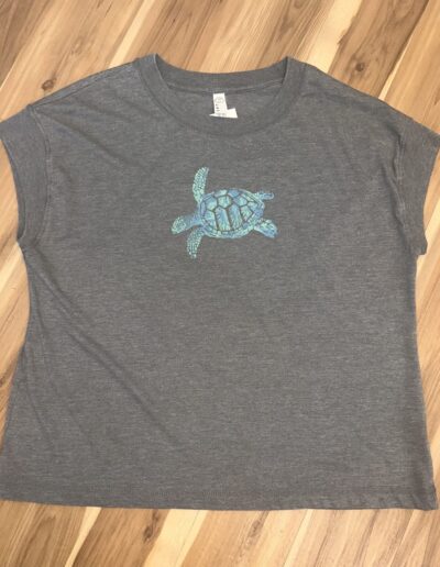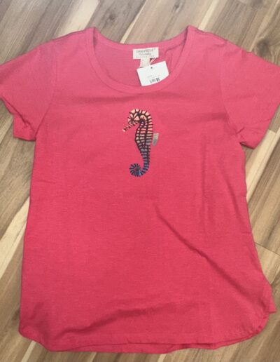 Be sure to look for the small print and signature on the back of all of her women’s designs. Donna has been turning top quality T-shirts into wearable art since the 70’s. We continue to paint each and every one of the shirts to this day.